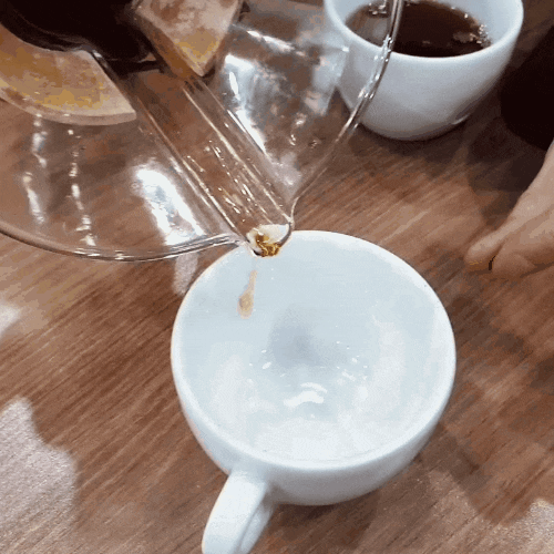 추출된 커피를 강사님께서 직접 따라주셨어요~ 근데 아까 묻어있는 원두가루를 보셨는지 손으로 슥슥 닦아주시네요 ㅋㅋㅋㅋ (머쓱하네요 ㅎㅎ..)