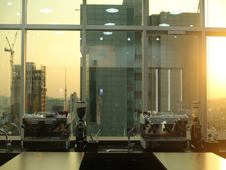 #코리아요리아트아카데미 의 #국제바리스타 강의실입니다~ 창밖으로 보이는 노을이 참 이쁘지 않나요?~