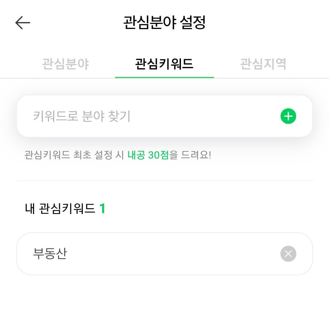 관심 키워드에 자신이 원하는 키워드를 넣어주면 되는데 저는 부동산쪽에 관심이 많아서 부동산을 넣어볼게요!~ 관심 키워드까지 다 작성을 했다고 끝이 아니니 끝까지 봐주세요^^