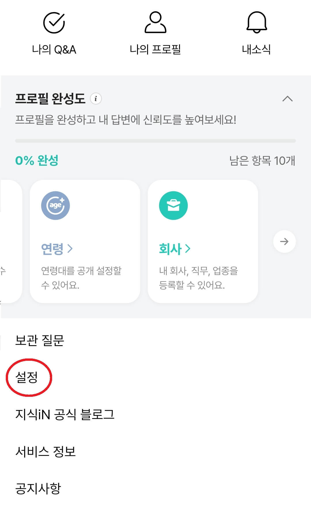 관심분야를 직접설정하기 위해 위 사진처럼 해당 항목을 눌러주세요~