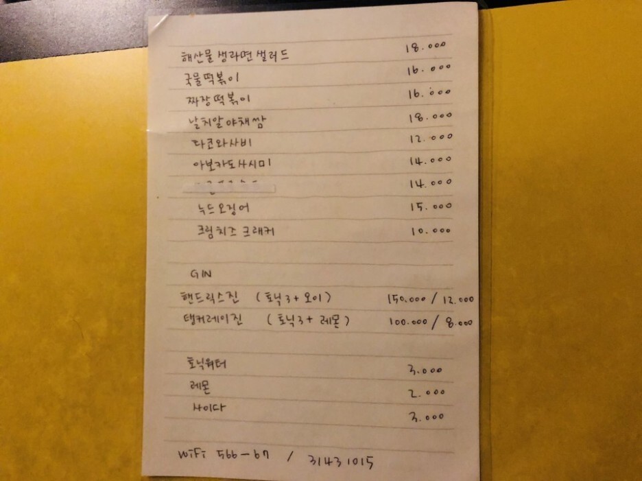 #연남동갬성술집 #101호사케집 메뉴판인데요. 메뉴들은 그렇게 많지가 않아요.