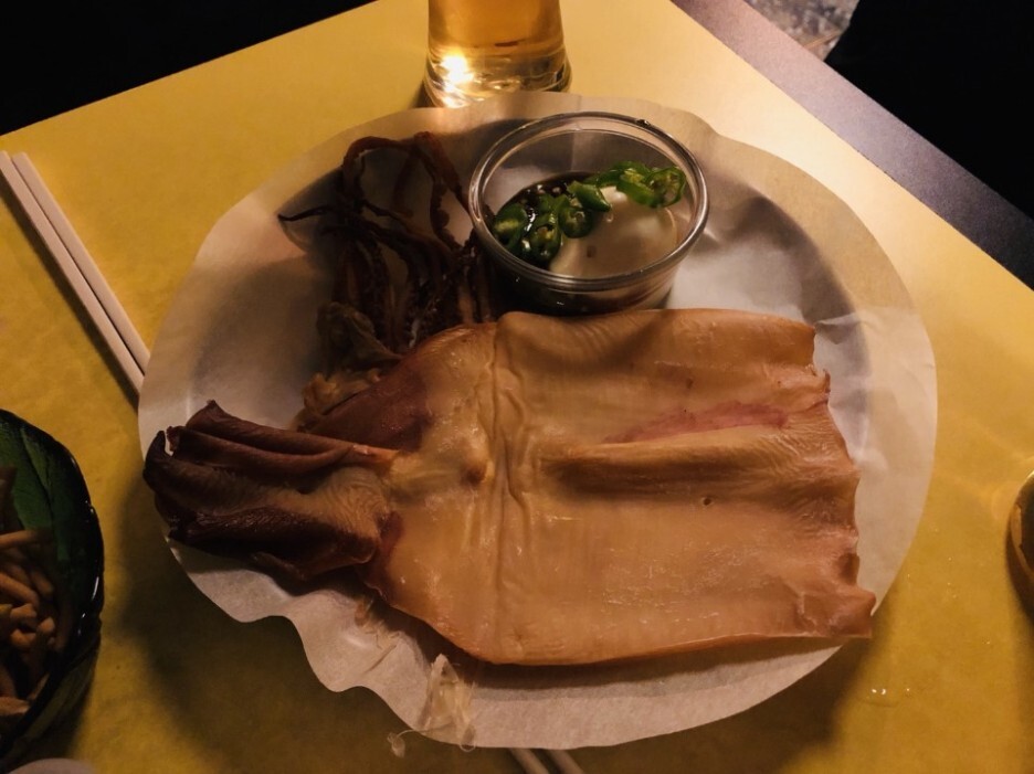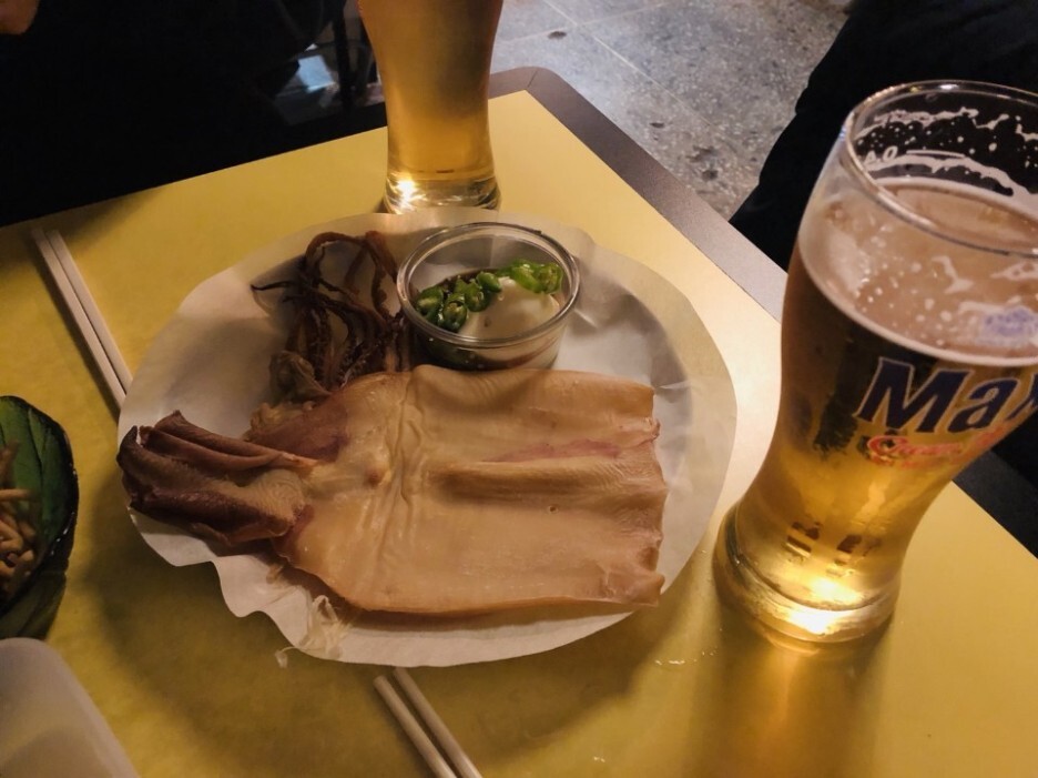 그래서 누드오징어 랑 생맥주를 주문했답니다~