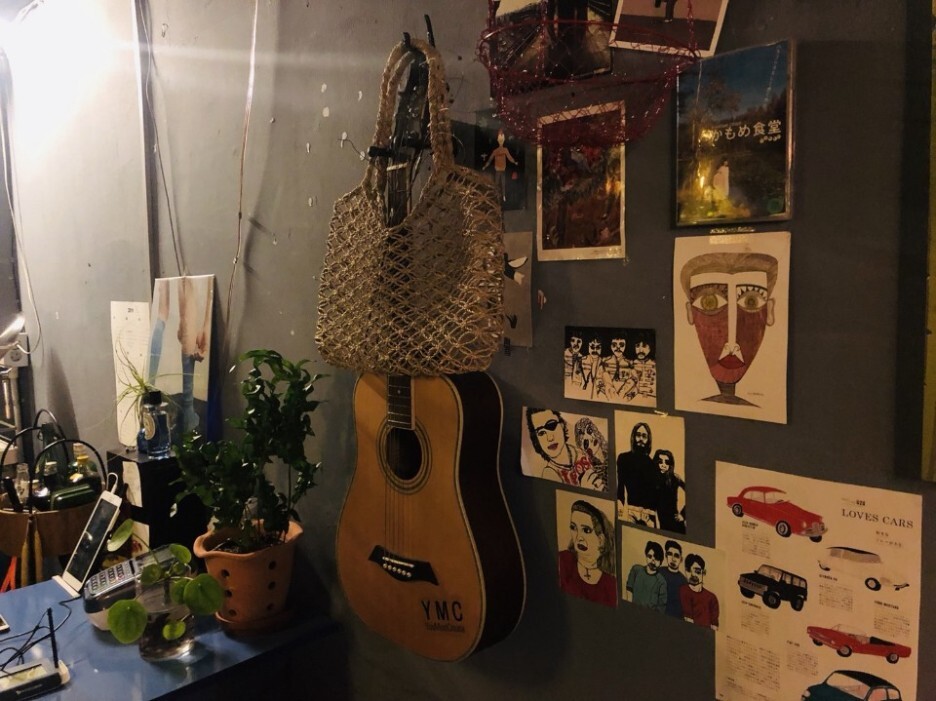 #연남동갬성술집 #101호사케집 의 매장의 반대쪽은 아까 어두운 느낌과는 상반된 밝은 조명들과 화분, 기타, 소품들 등등 밝은 분위기를 연출하고 있었어요.